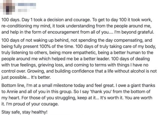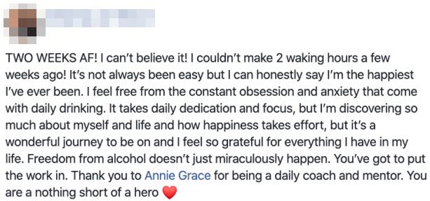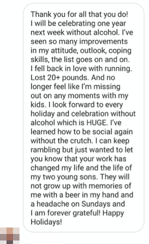 That doesn’t just mean they were no longer drinking (again, that is where most programs stop), it means they were actually happy about their decision.