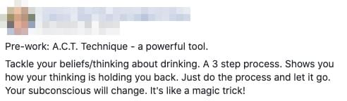 Most PATH members stop drinking entirely about 4 months in. And then they go from their behavior changed (stopping drinking) to their mindset changing (being truly free and happy about it after that).